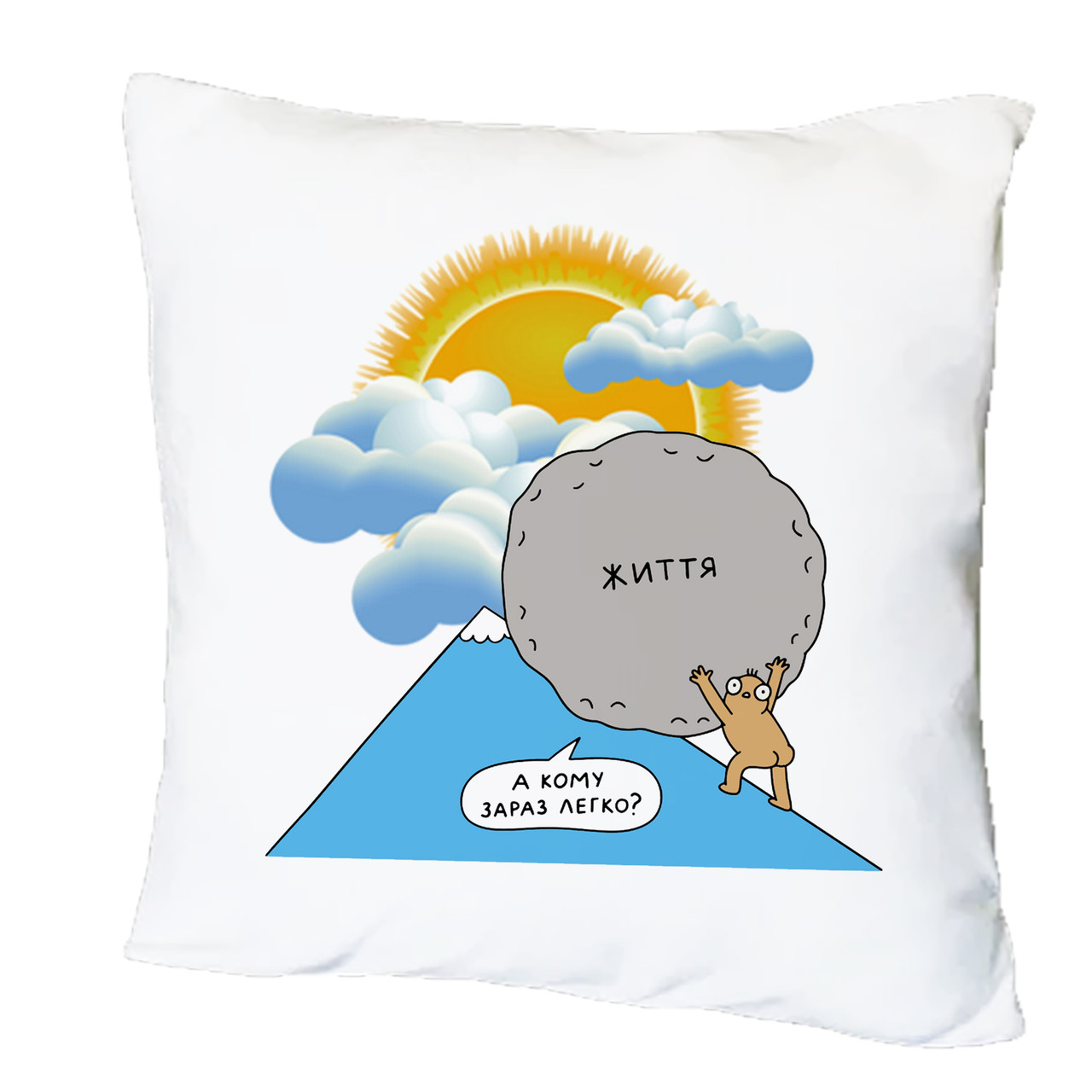 Друк на подушках. Подушка з друком "А кому зараз легко?". У комплекті наволочка+подушка. Колір білий. Є можливість нанесення друку з обох сторін.