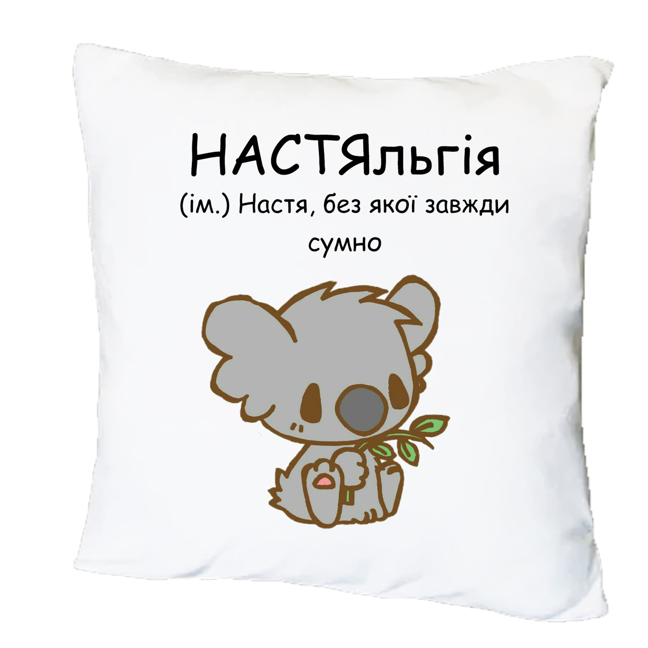 Друк на подушках. Подушка з друком "НАСТЯльгія". У комплекті наволочка+подушка. Колір білий. Є можливість нанесення друку з обох сторін.