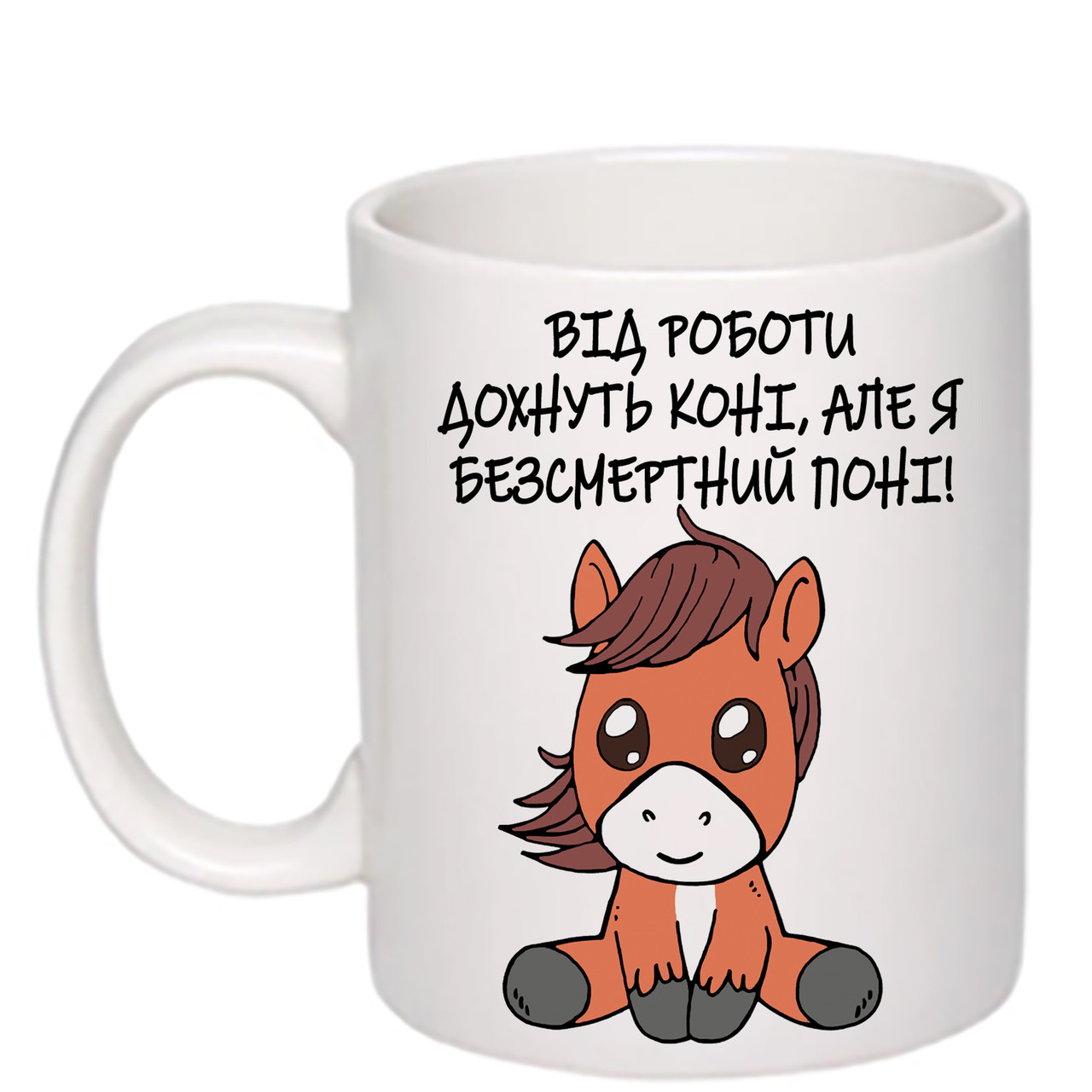 Чашка з друком "Безсмертний поні". Колір, мова, напис, зображення можуть бути змінені за бажанням замовника (ціну уточнюйте у менеджера).