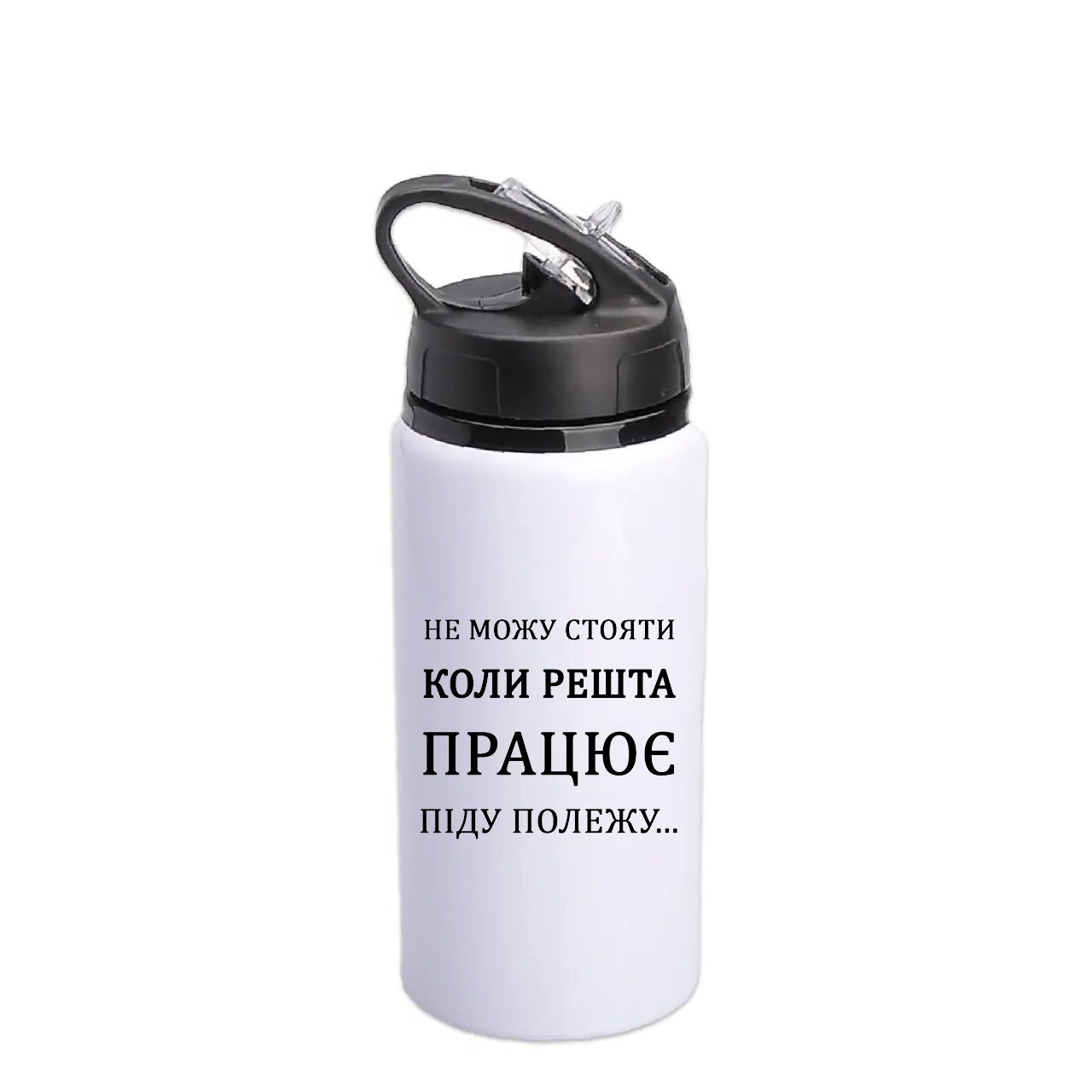 Пляшка для води, спортивна, металева, біла, з друком "Піду полежу..."