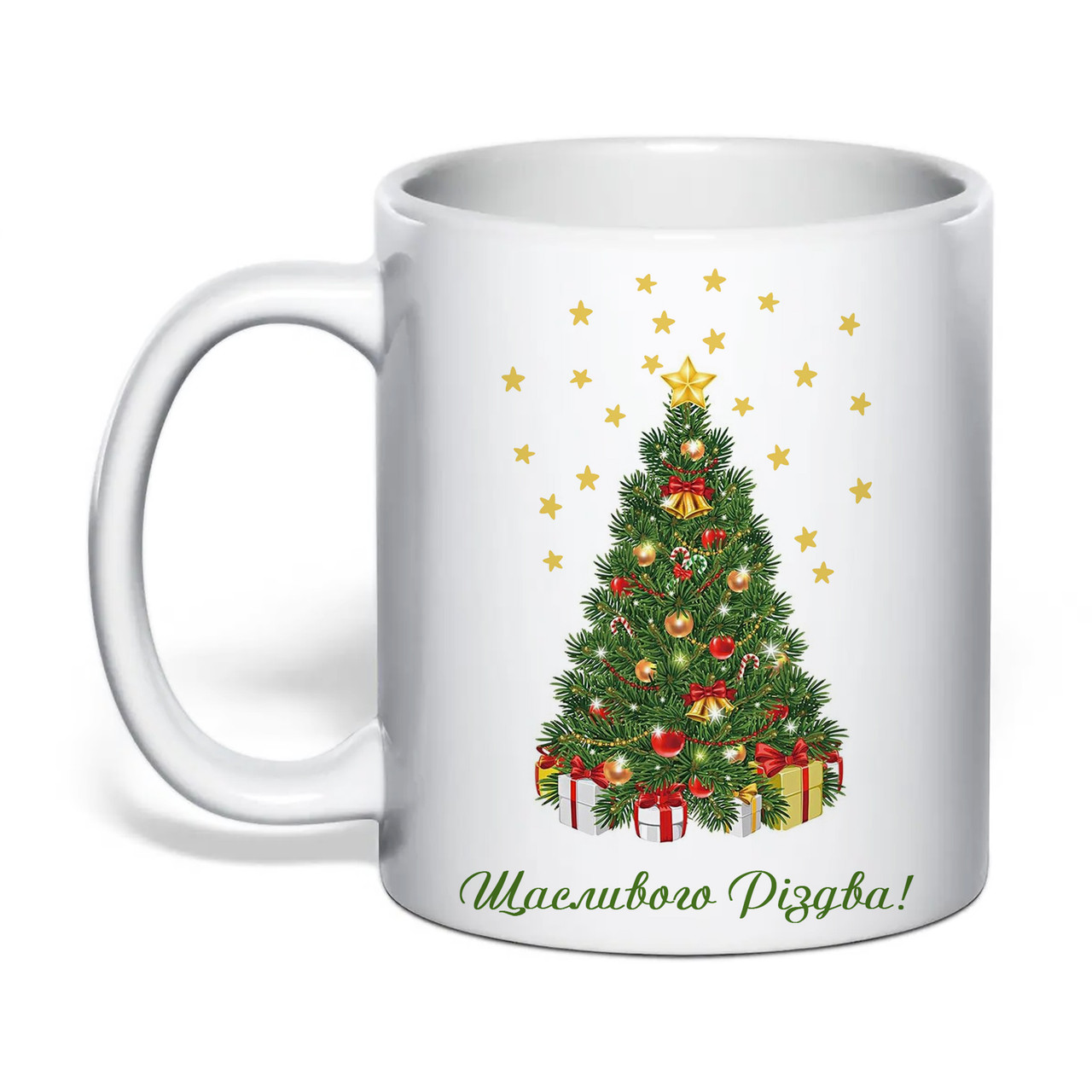 Чашка з друком "Щасливого Різдва!". Ім'я можна змінити за бажанням замовника. Колір, мова, напис, зображення можуть бути змінені за бажанням замовника (ціну уточнюйте у менеджера).